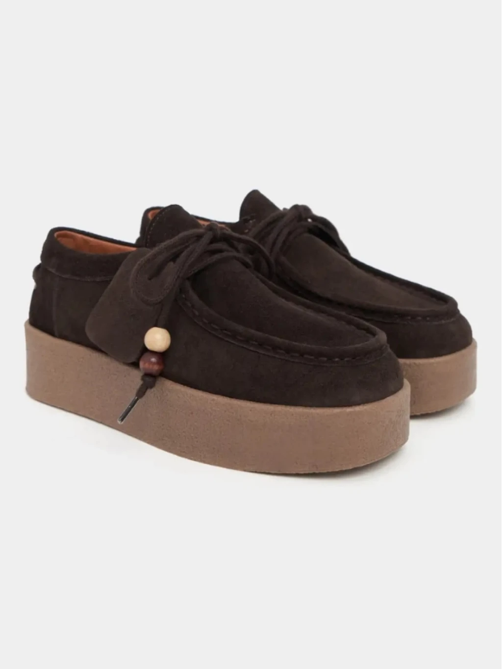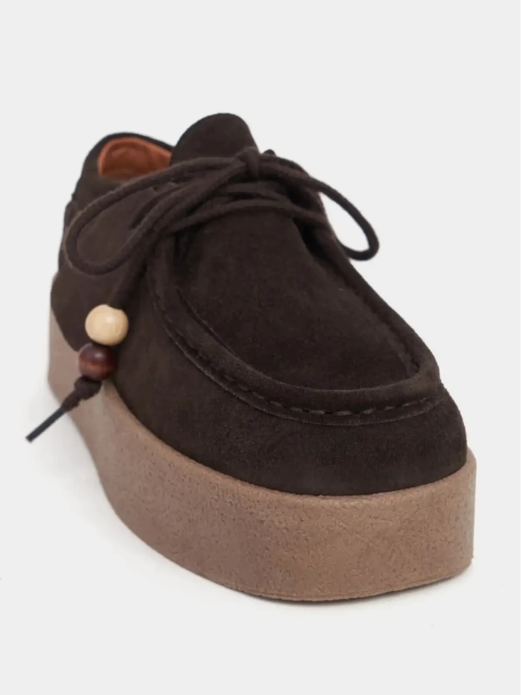 Bağcık Detay Süet Deri Loofer Kahve