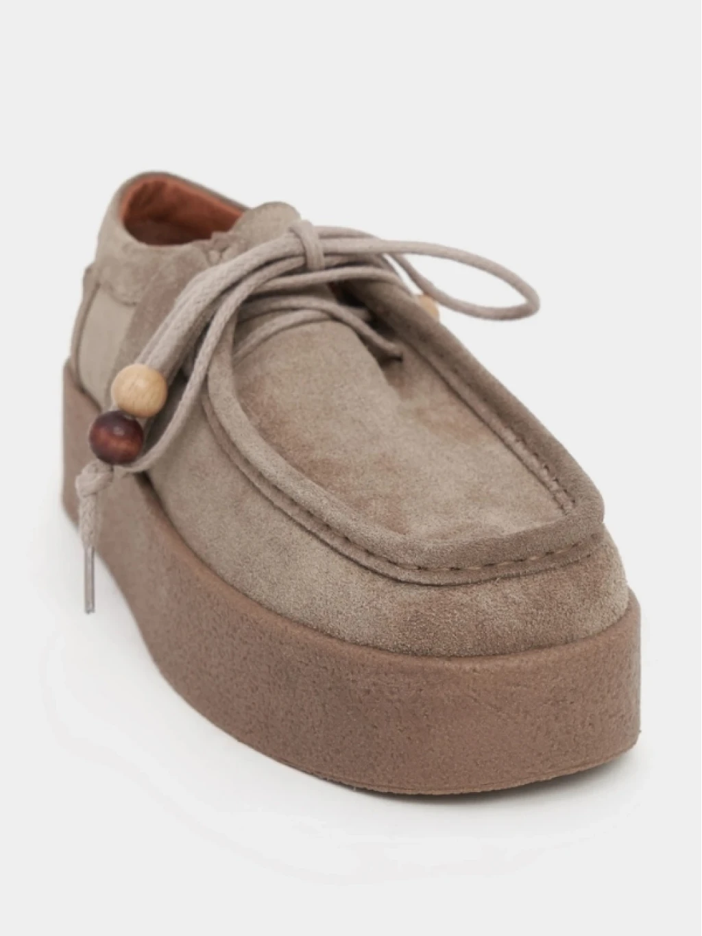 BAĞCIK DETAY SÜET DERİ LOOFER KAHVE