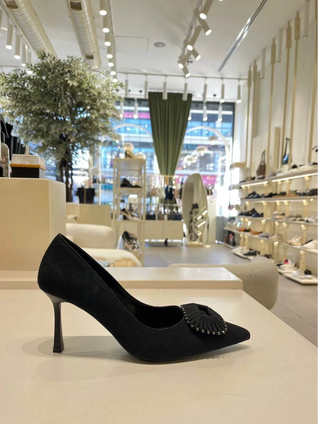 Baskı Detay Süet Deri Stiletto Siyah