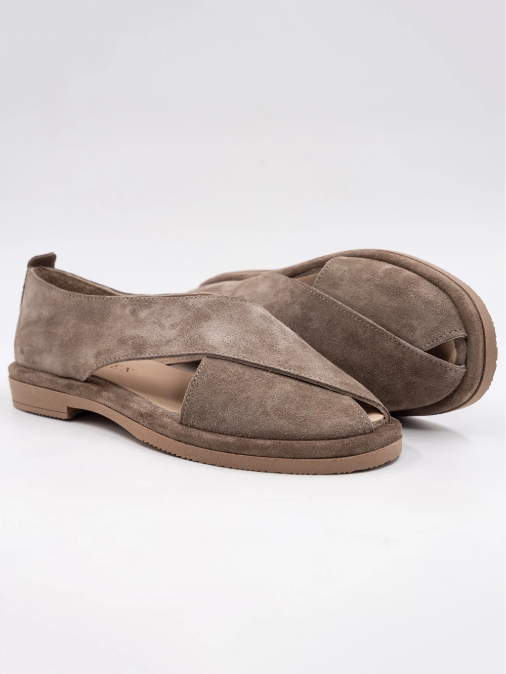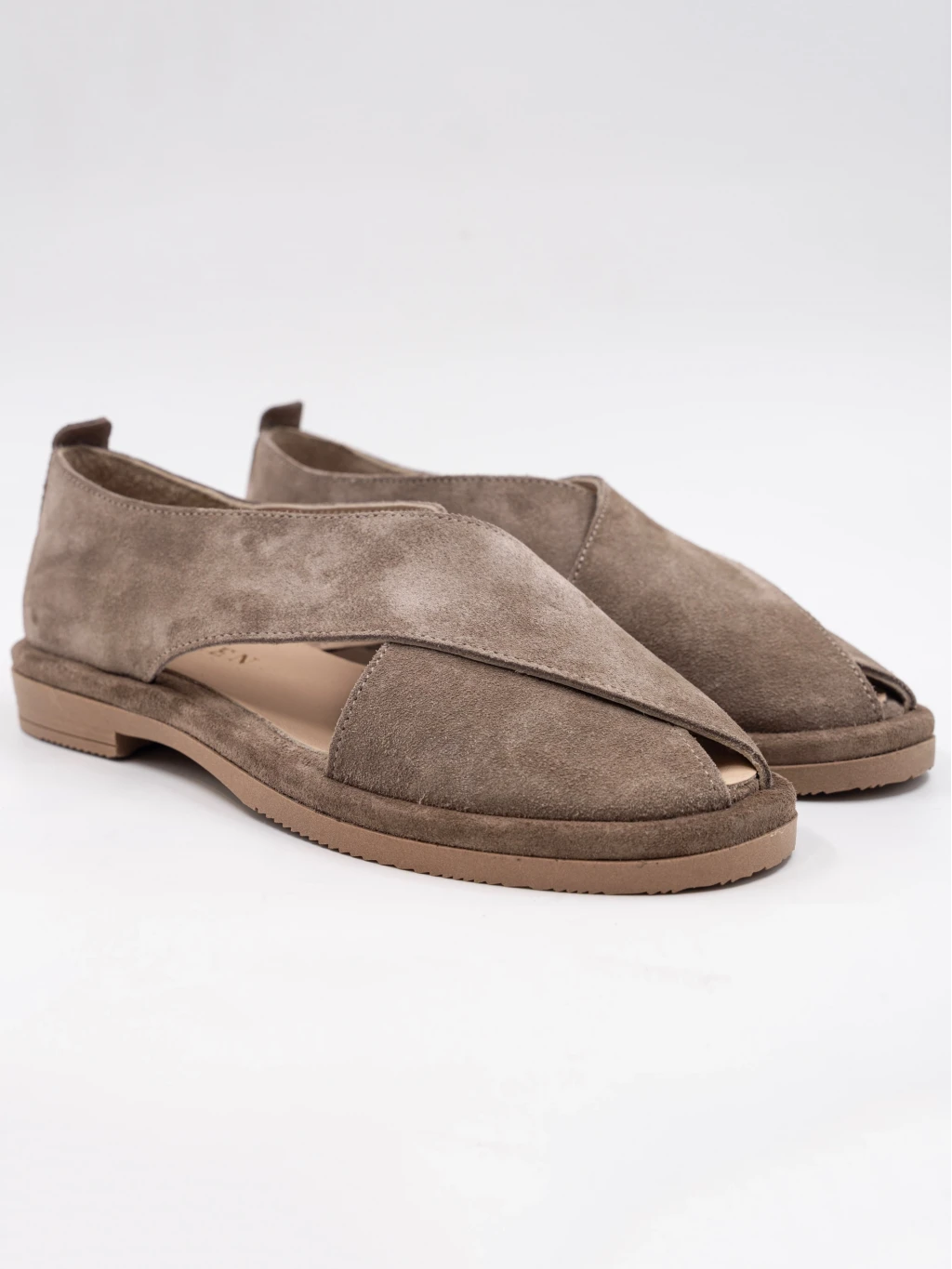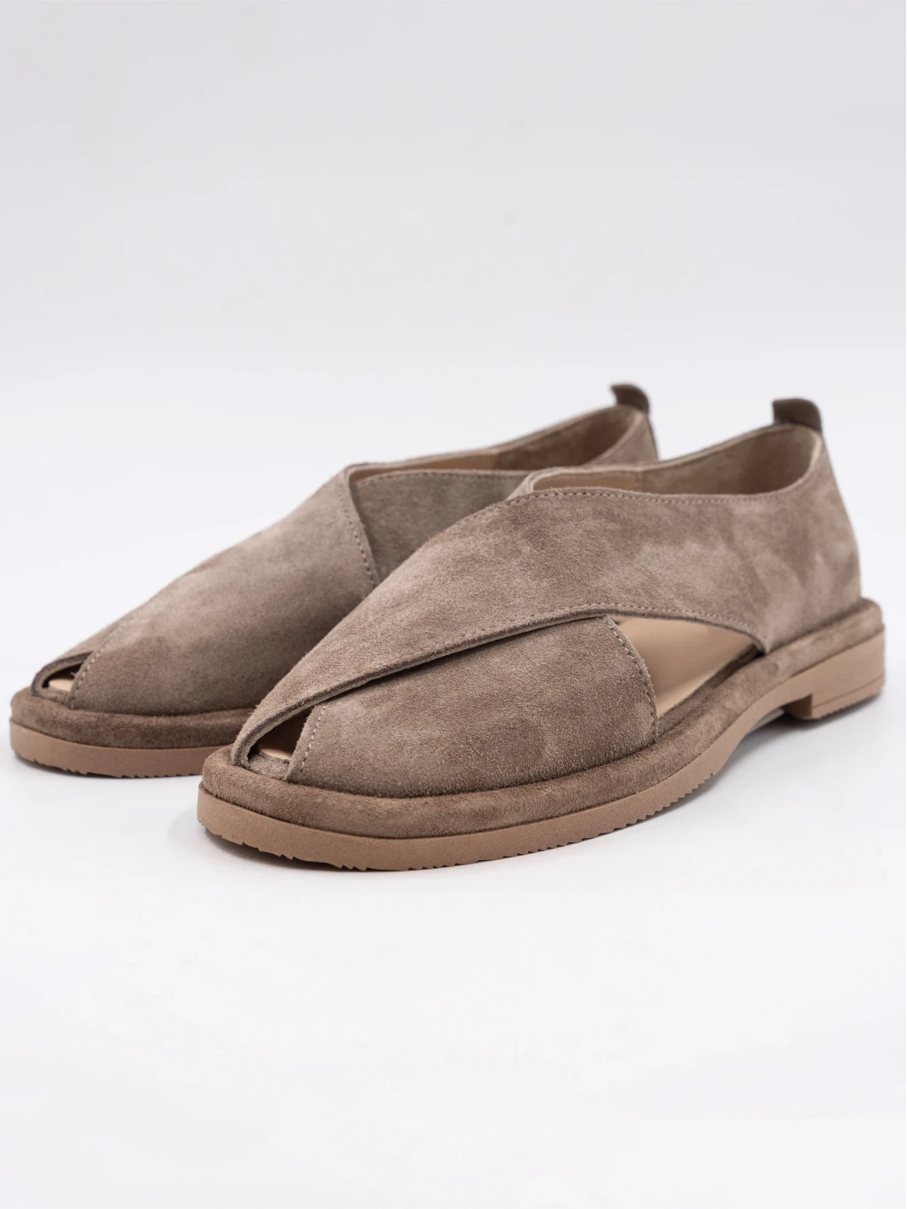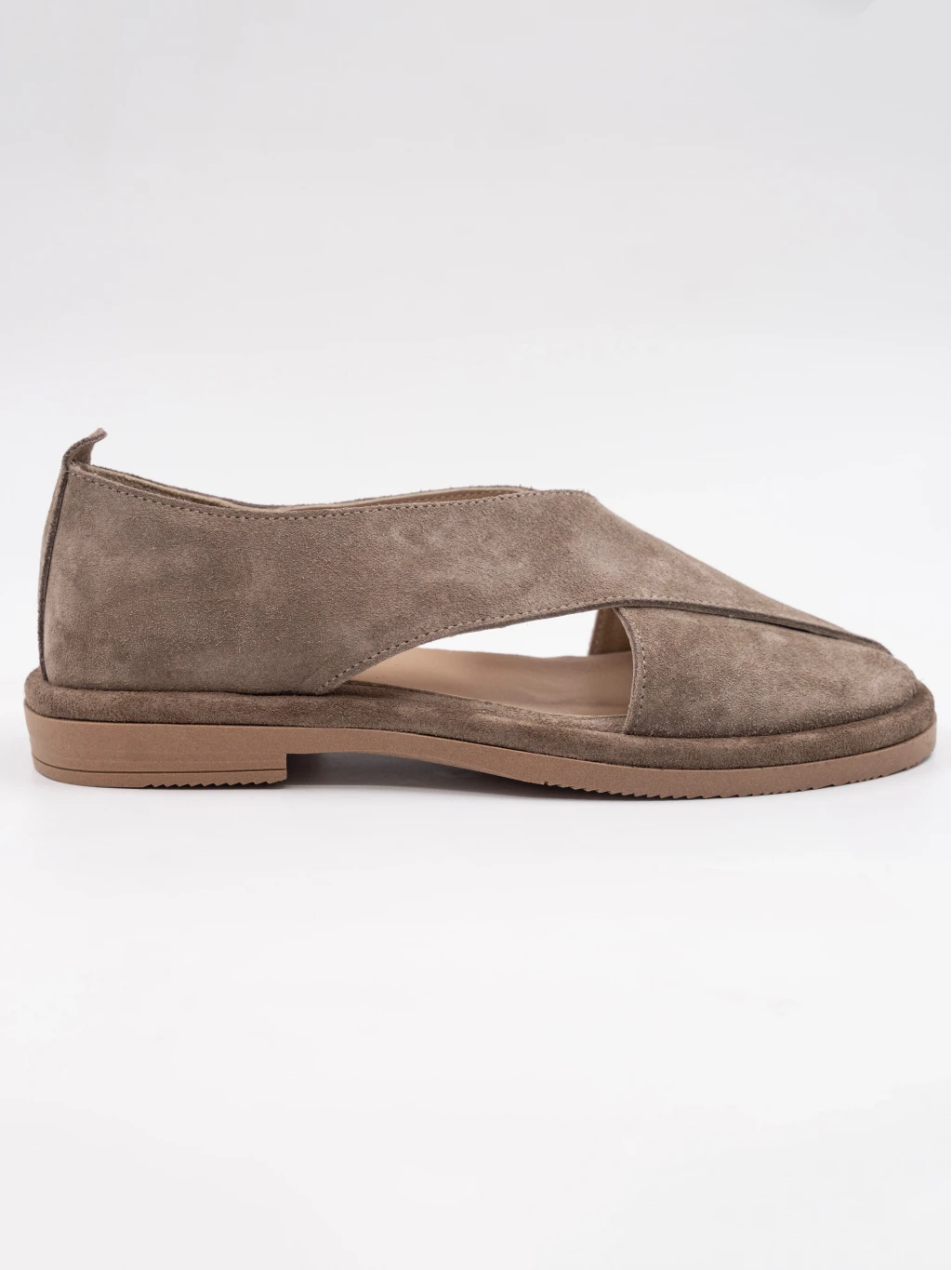 Çapraz Bantlı Süet Deri Sandalet Vizon