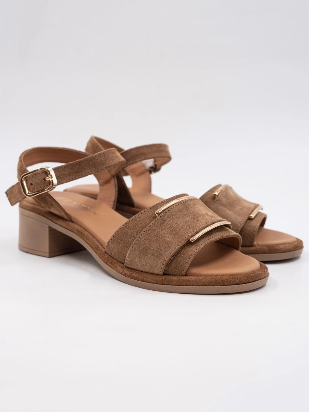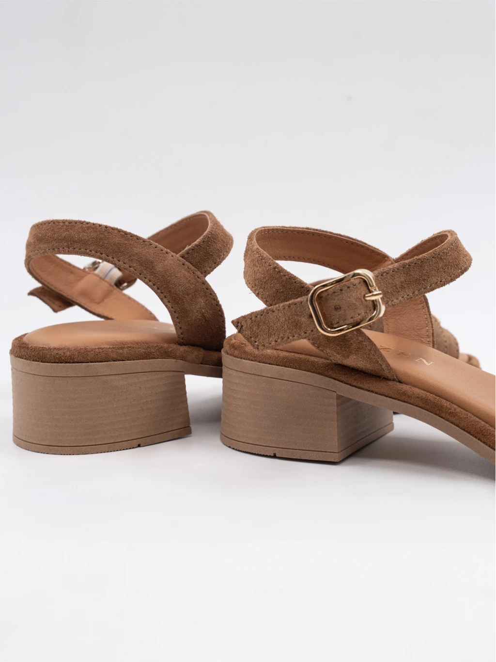 KADIN TOPUKLU SÜET DERİ SANDALET KAHVE