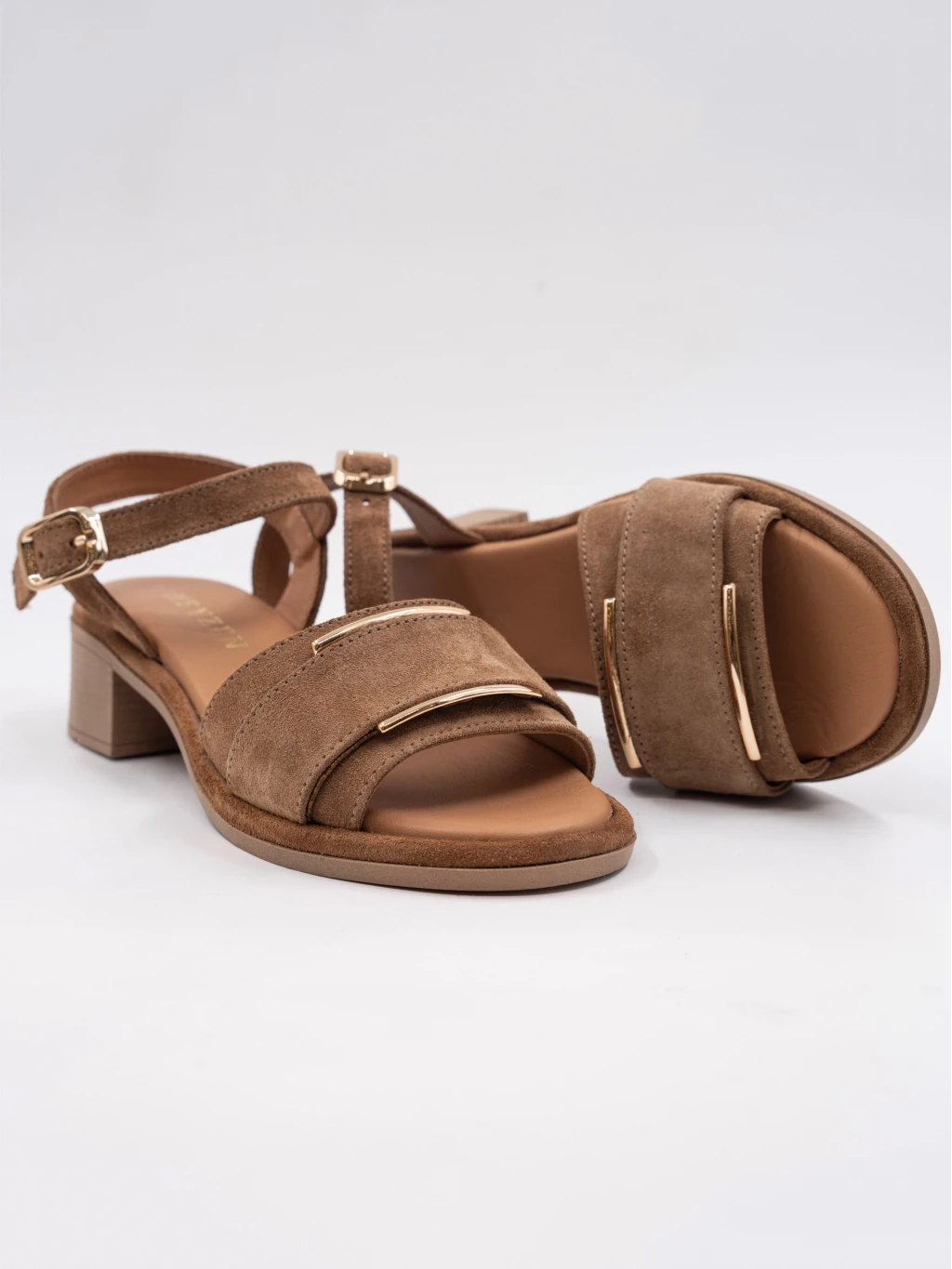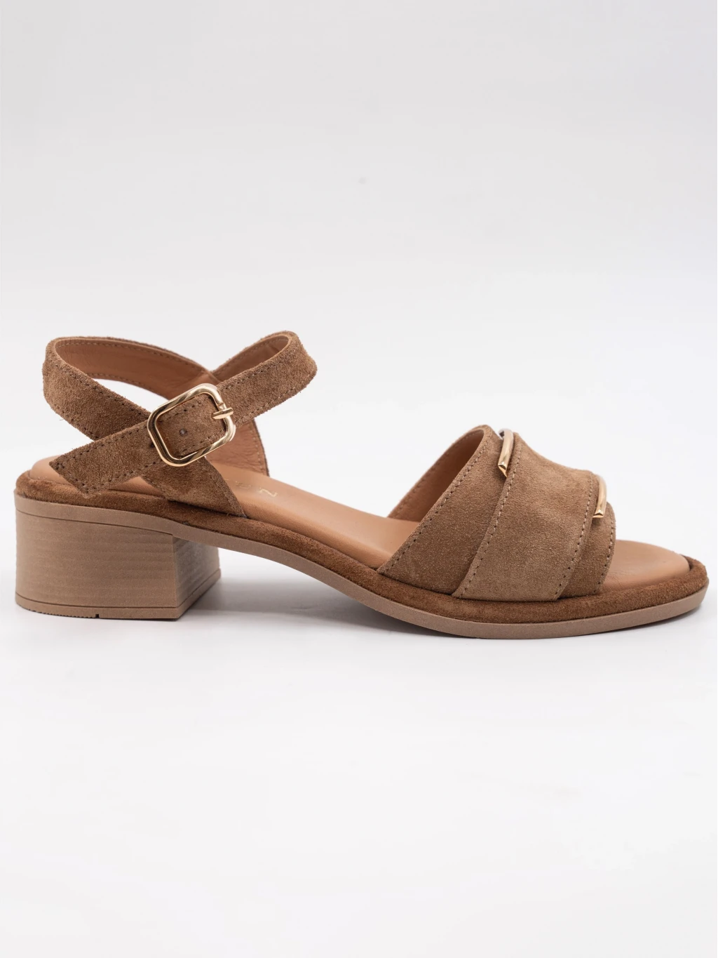 Gold Toka Detay Süet Deri Sandalet Sigaro