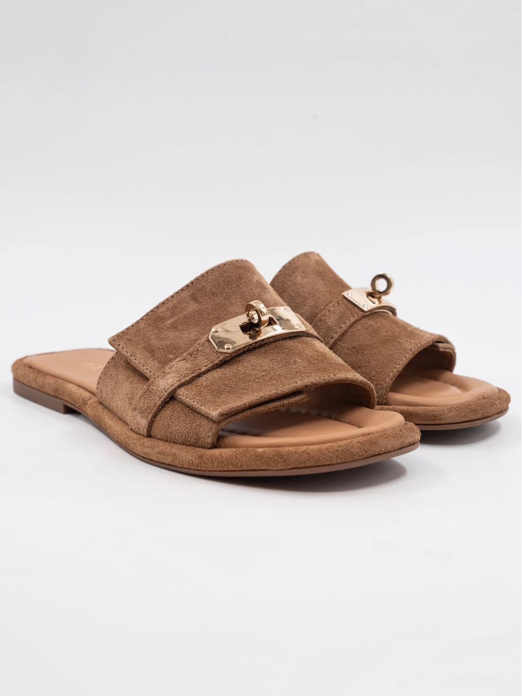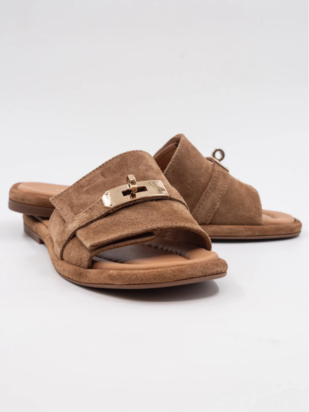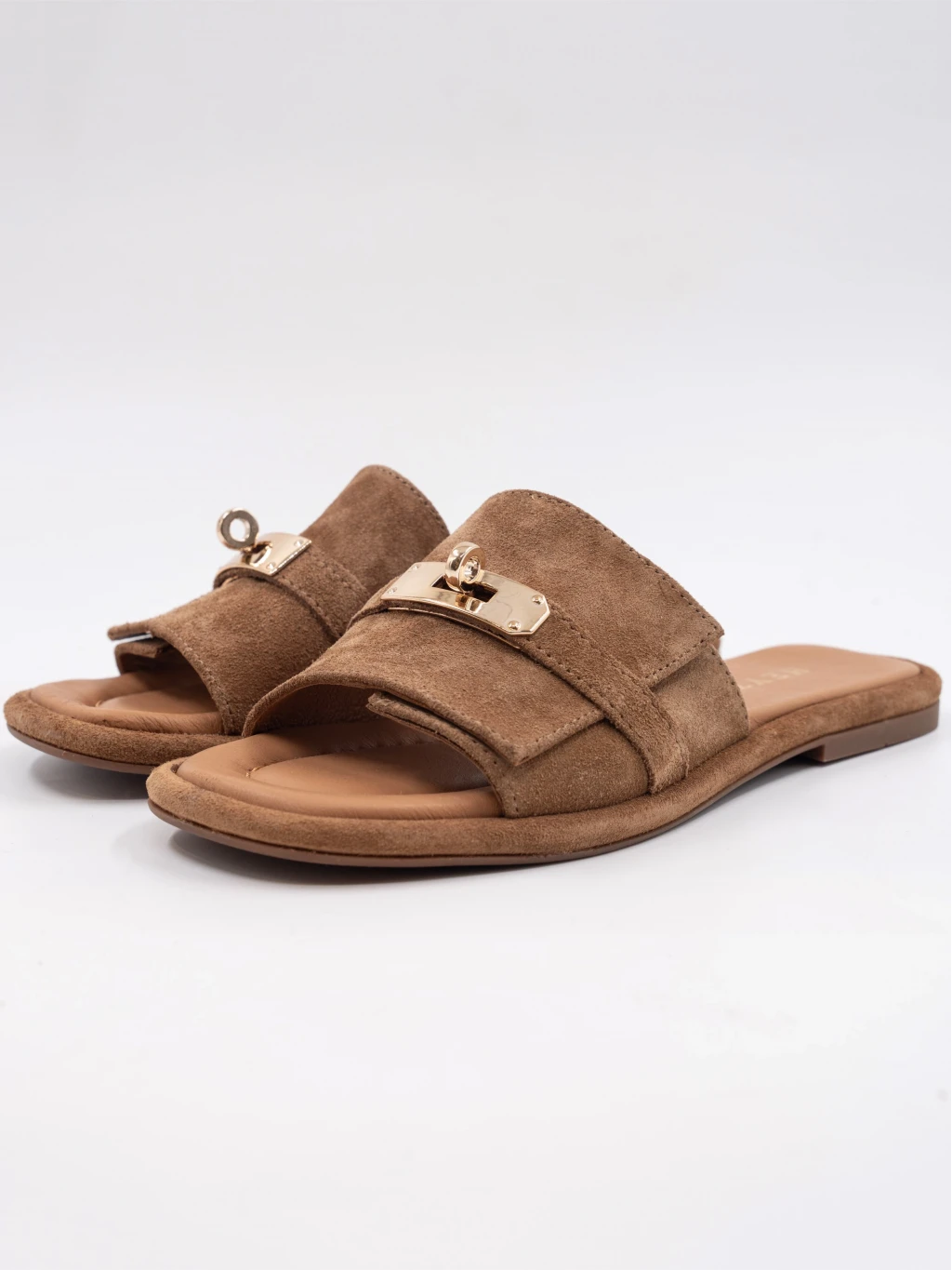 Gold Toka Detay Süet Deri Terlik Sigaro