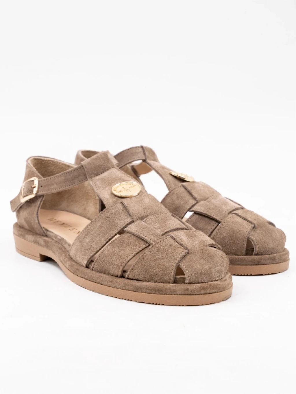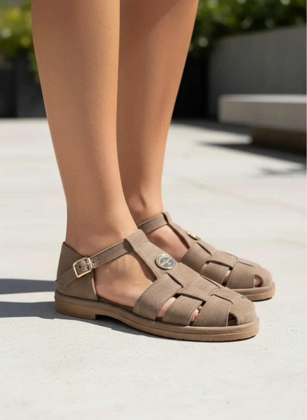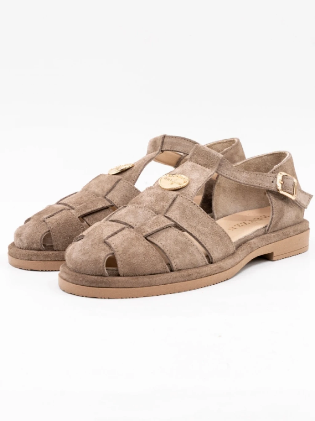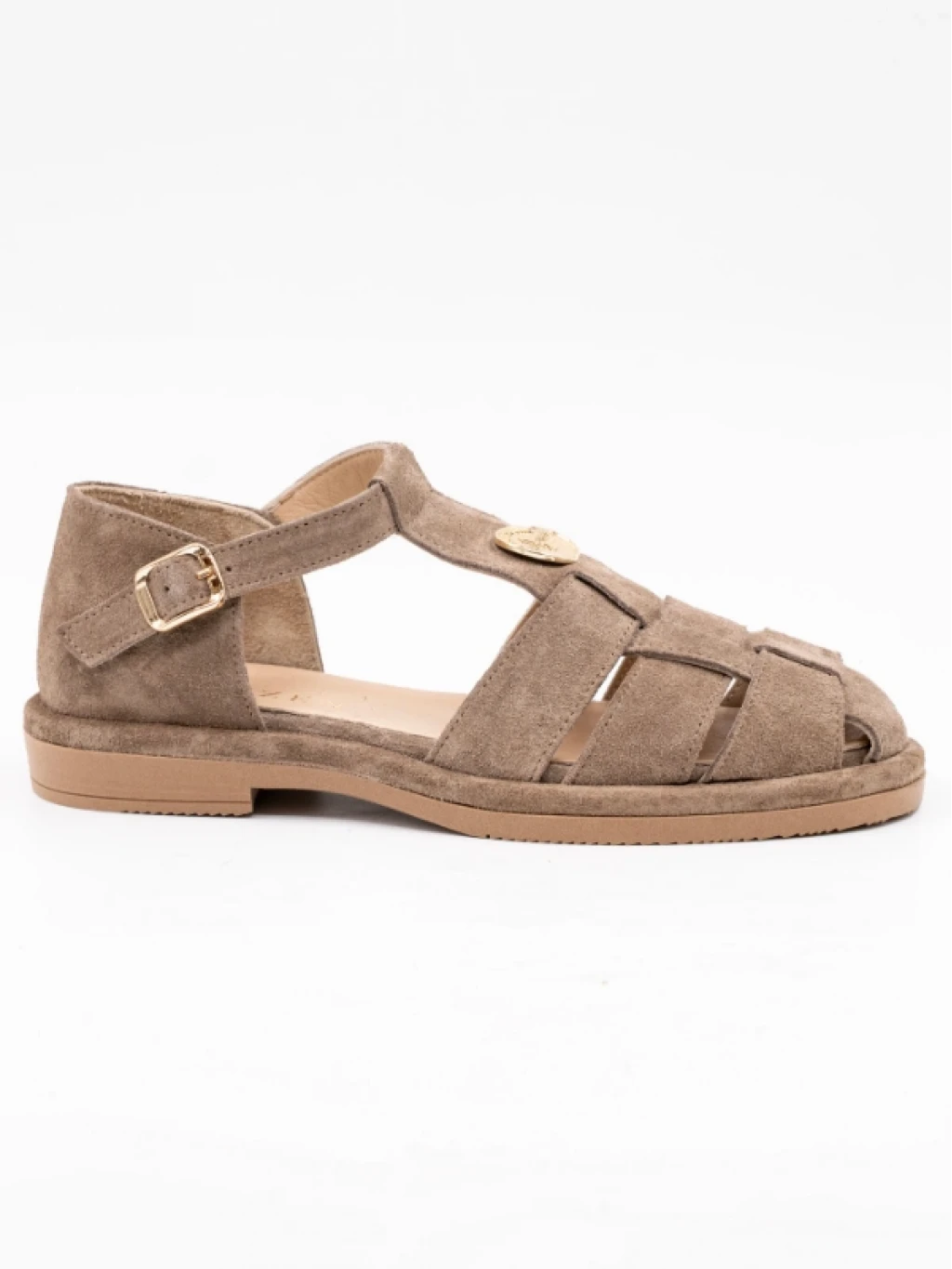 Gold Toka Detaylı Süet Deri Sandalet Bej