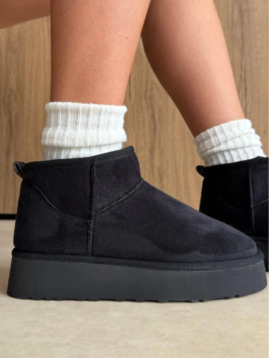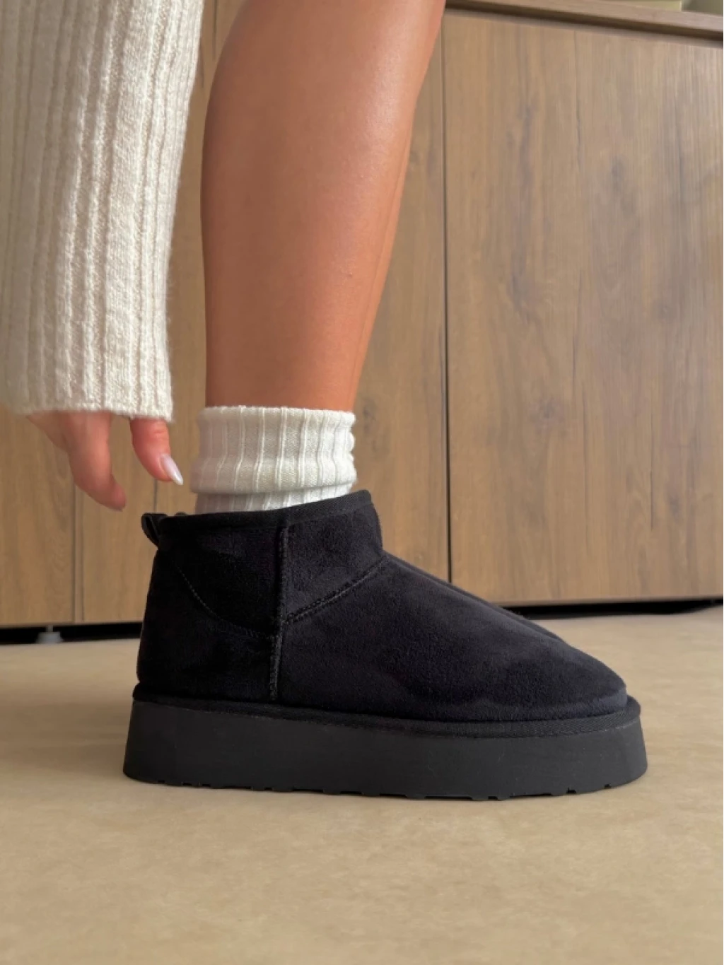 Kalın Taban Kürklü Bot Siyah