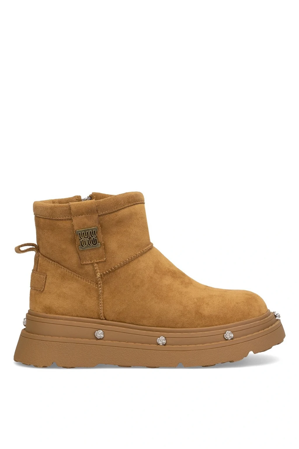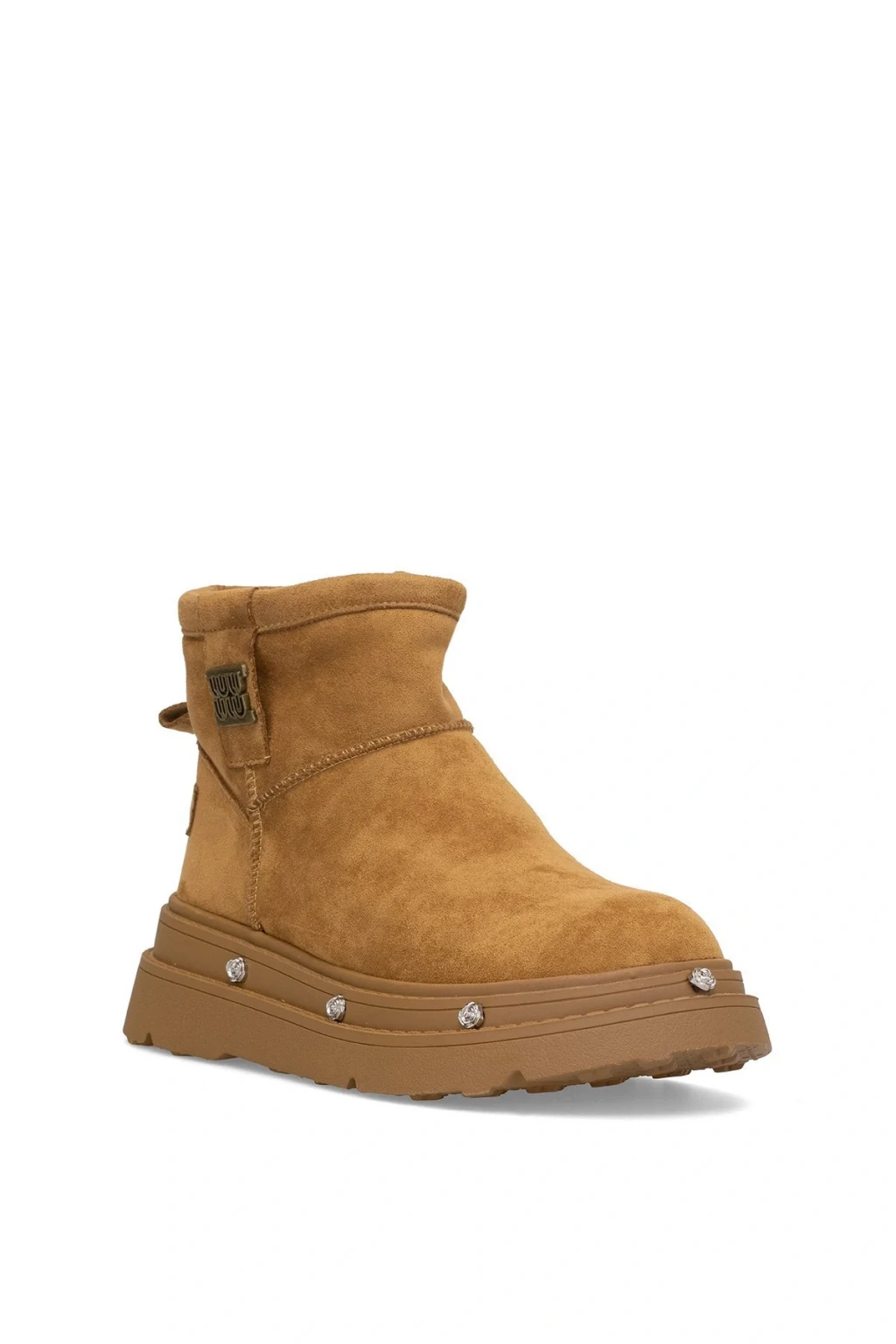 Kalın Taban Kürklü Süet Deri Bot Taba