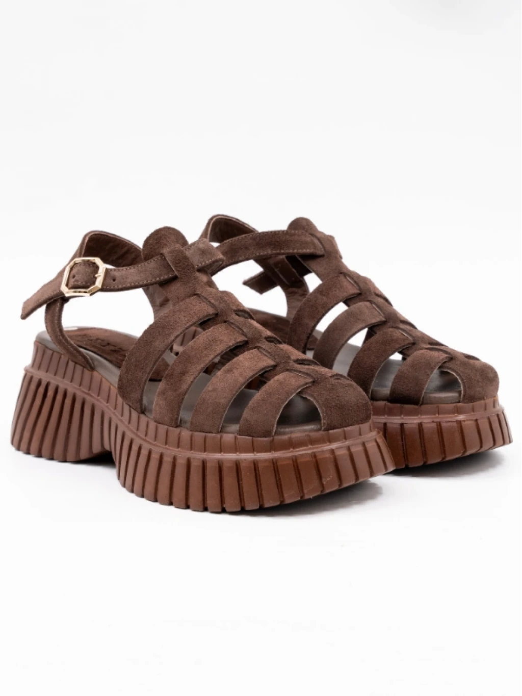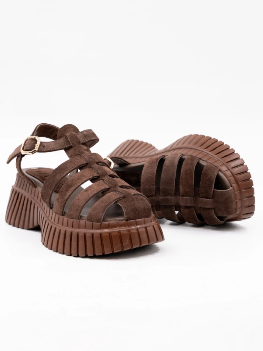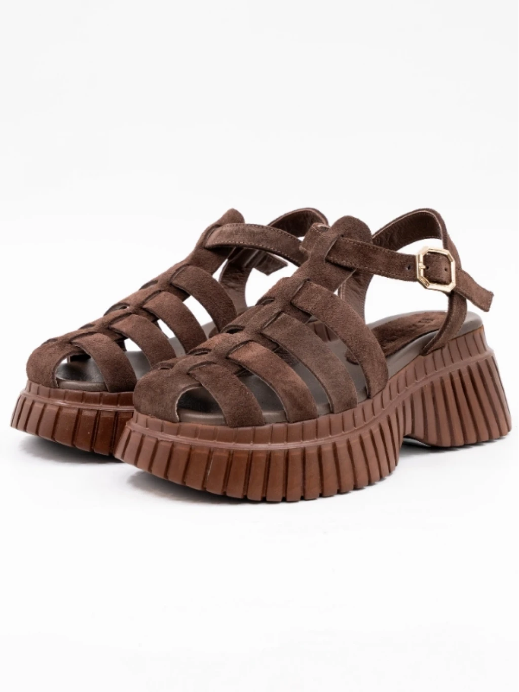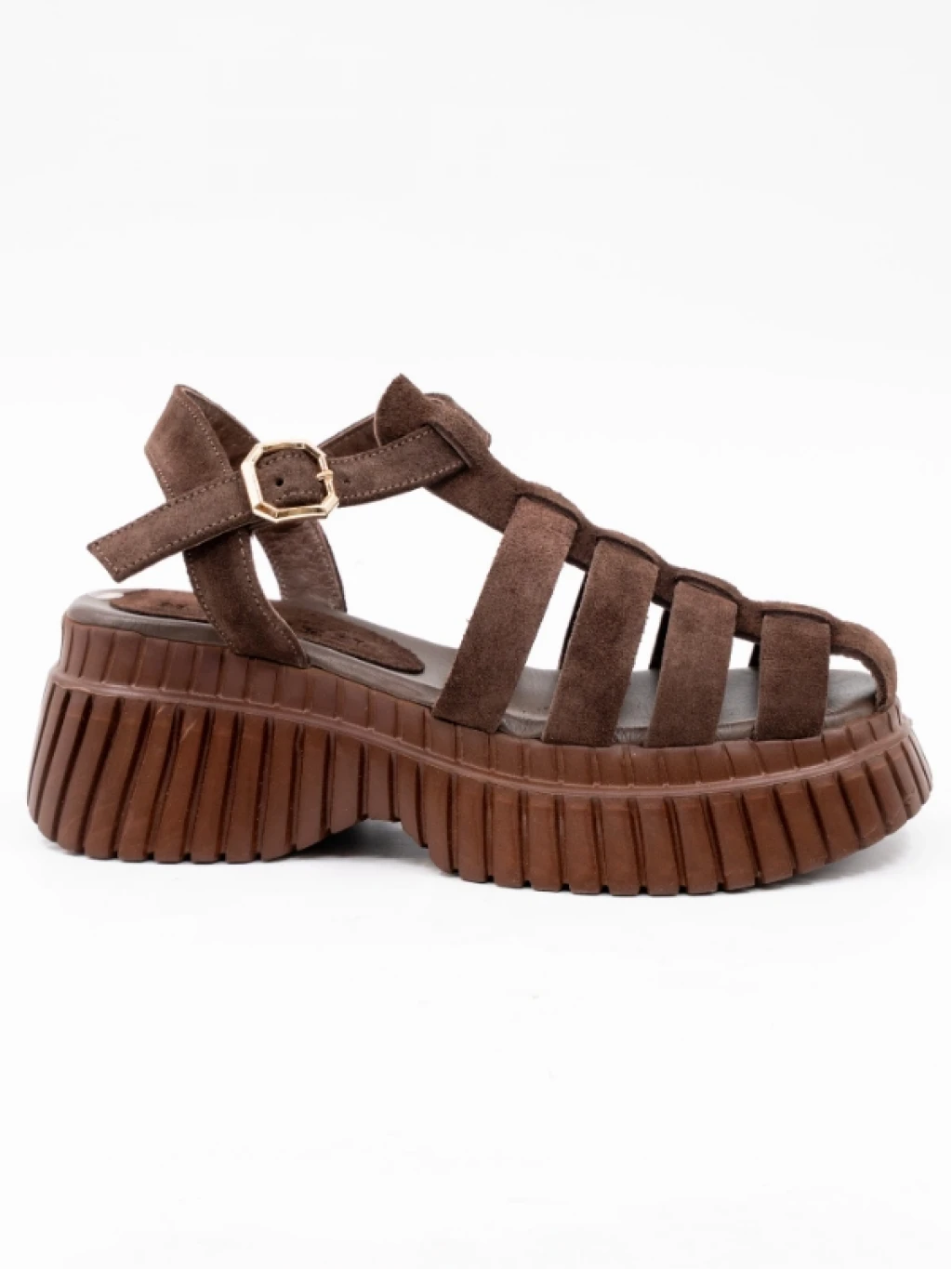 Çapraz Bantlı Süet Deri Sandalet KAHVE