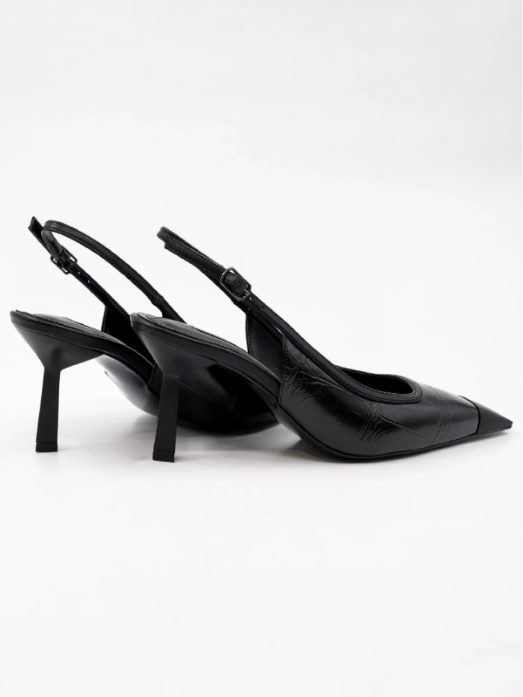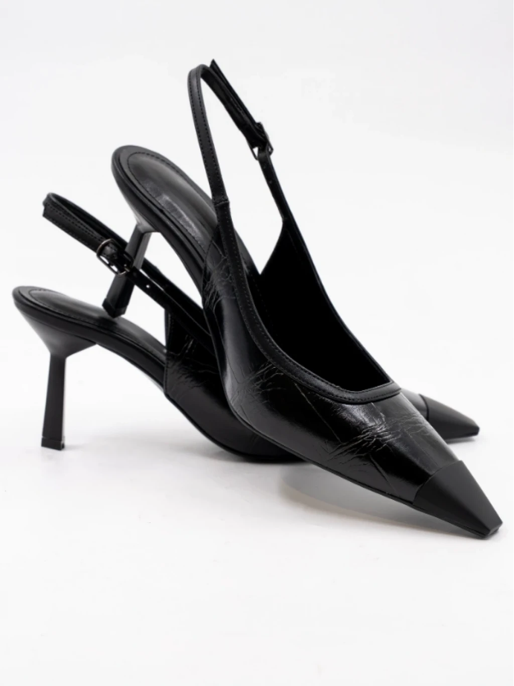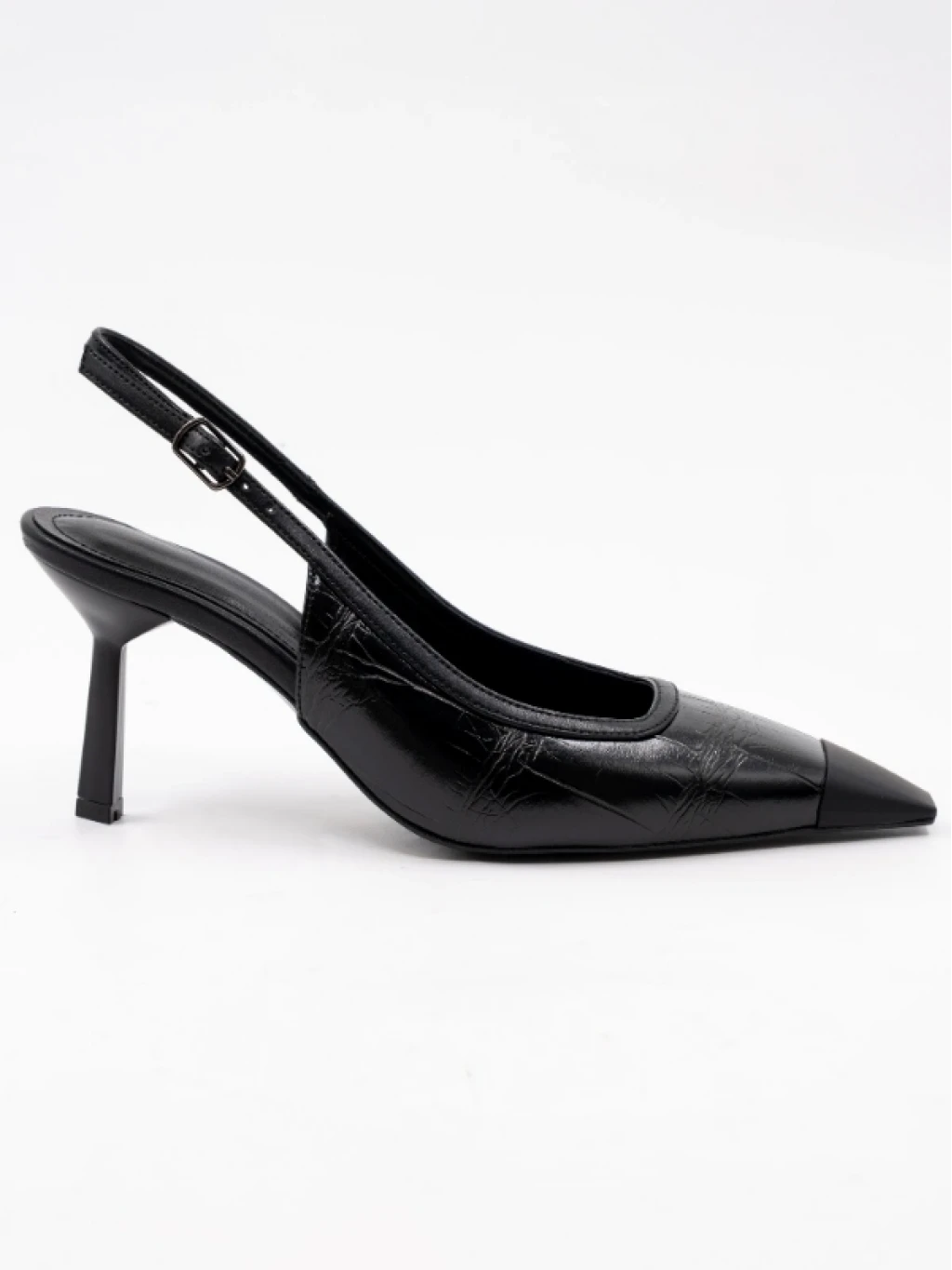Kroko Baskı Cilt Deri Topuklu Siyah