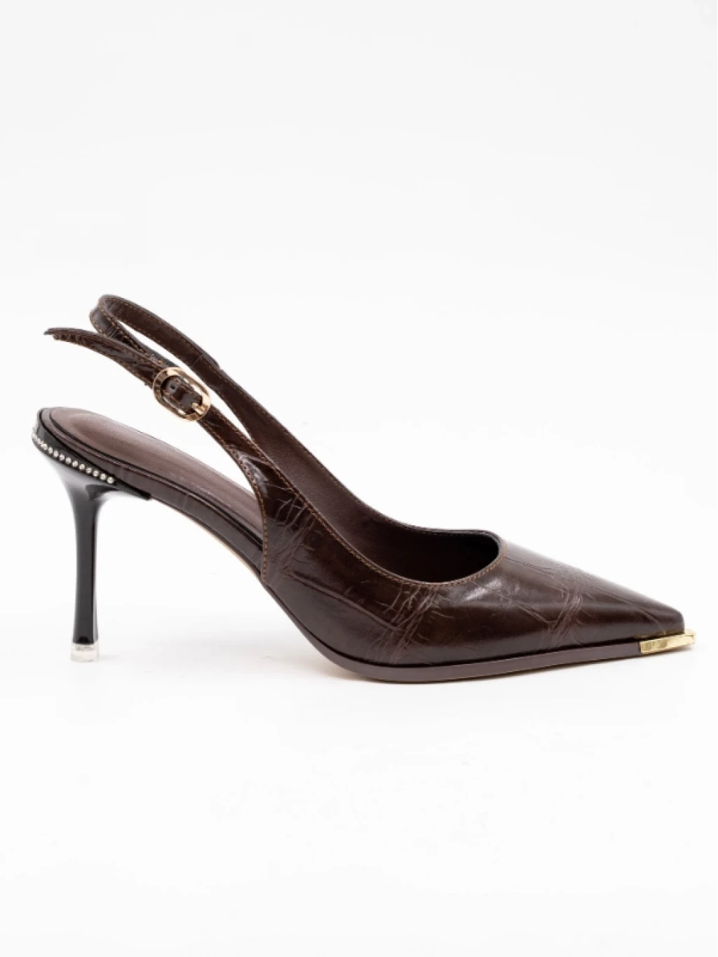 KROKO BASKI CİLT DERİ TOPUKLU SİYAH