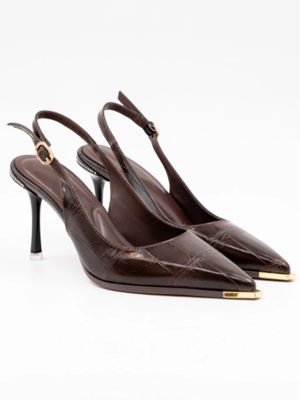 ÇAPRAZ DETAY DERİ TOPUKLU SANDALET LAME