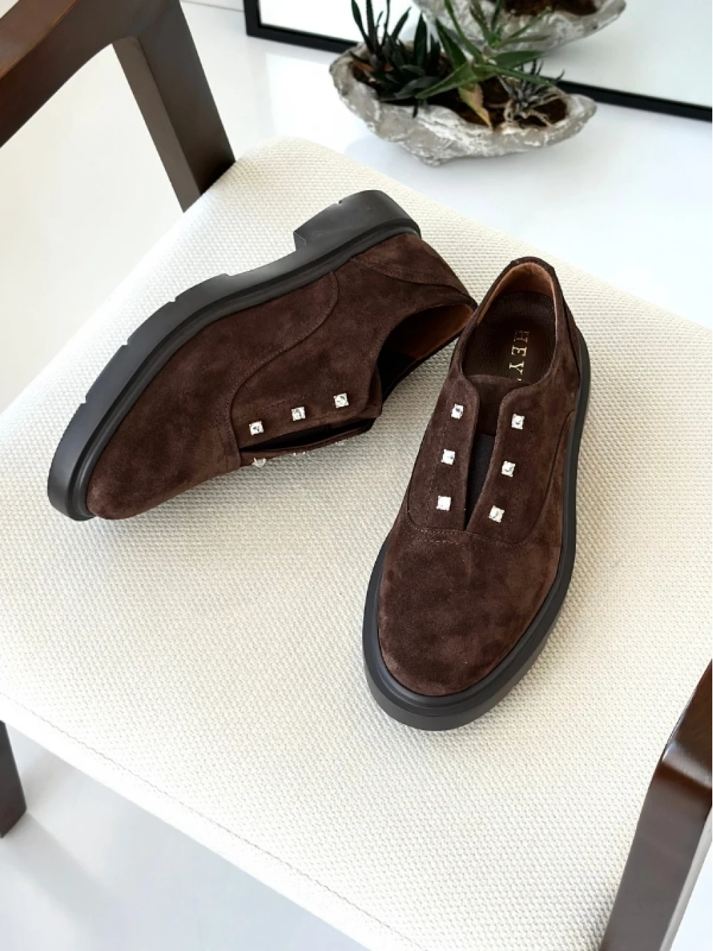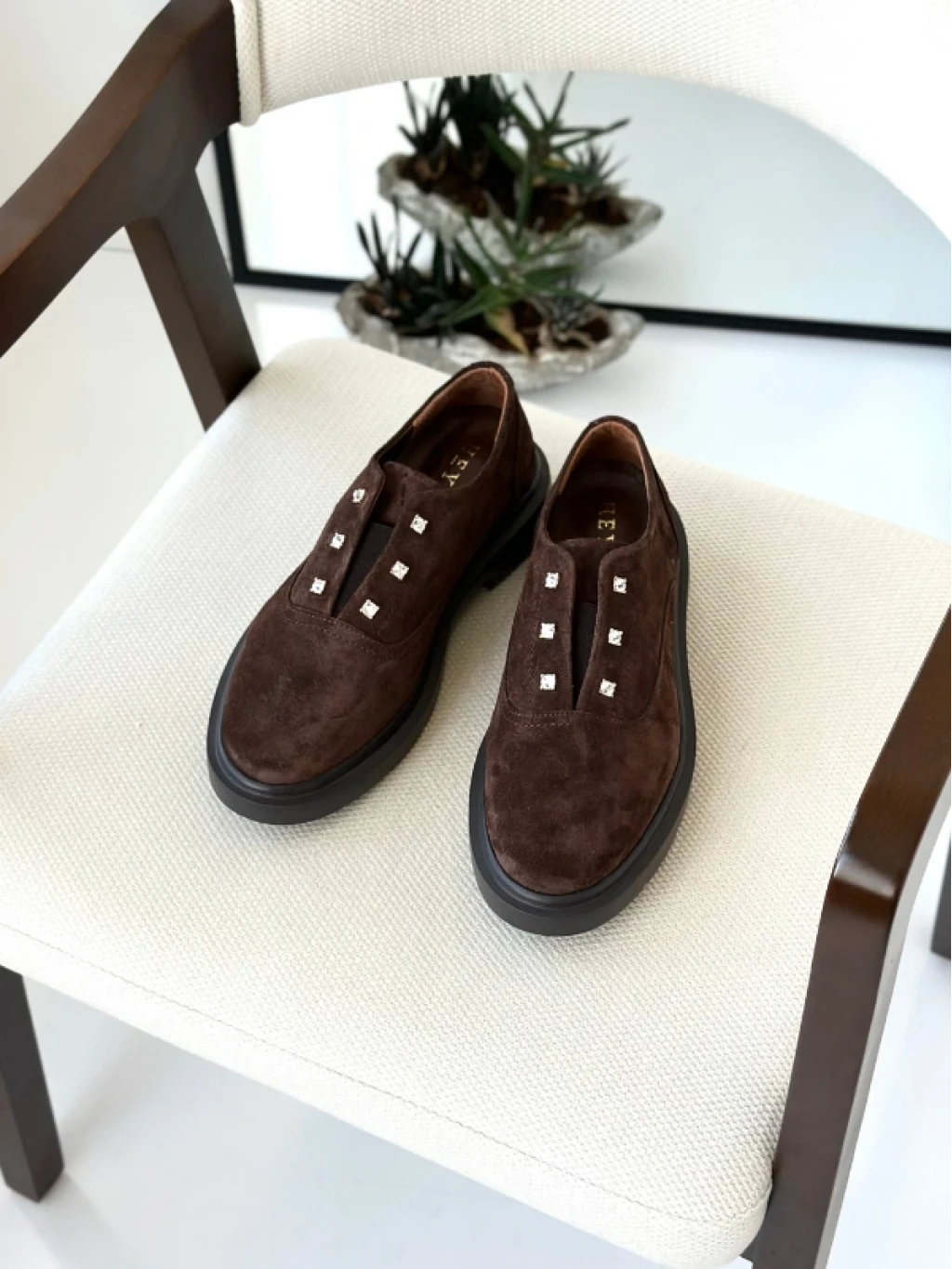 BAĞCIK DETAY SÜET DERİ LOOFER KAHVE