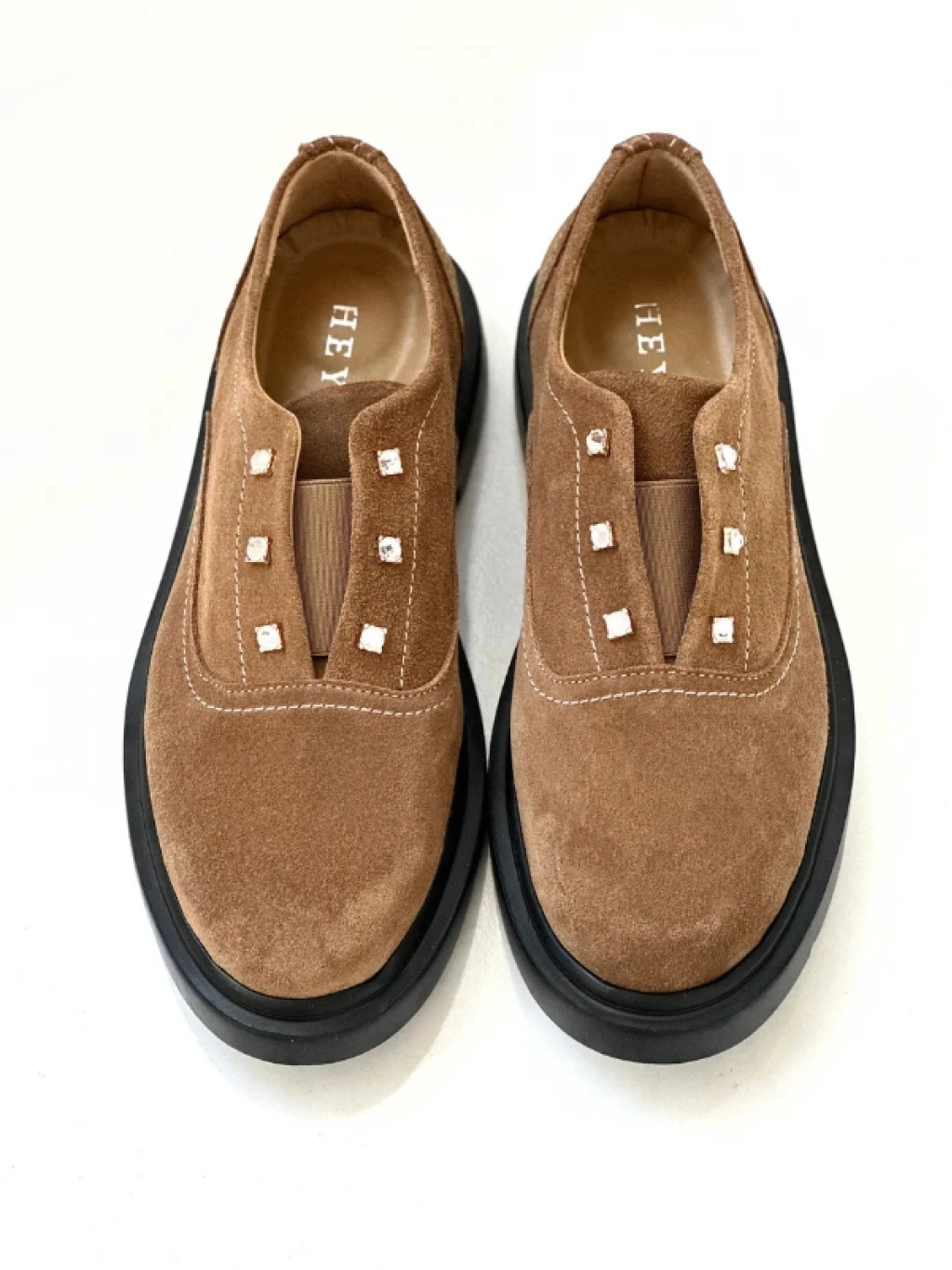 LASTİK DETAY SÜET DERİ LOAFER KAHVE