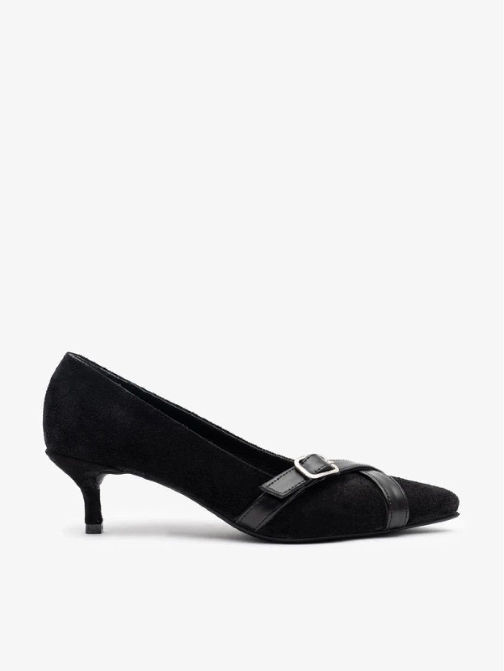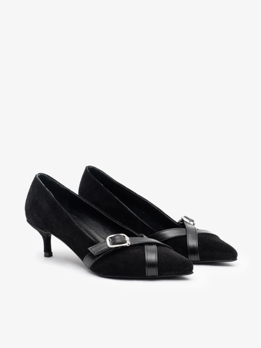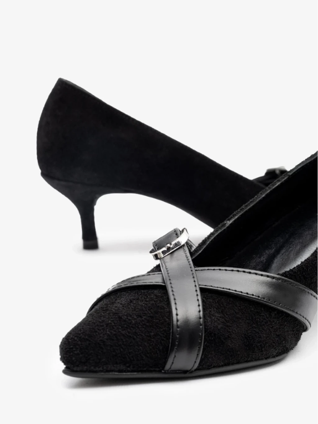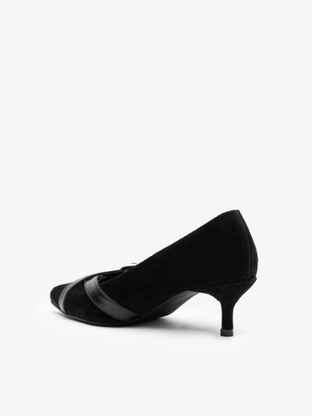 BASKI DETAY SÜET DERİ STİLETTO SİYAH
