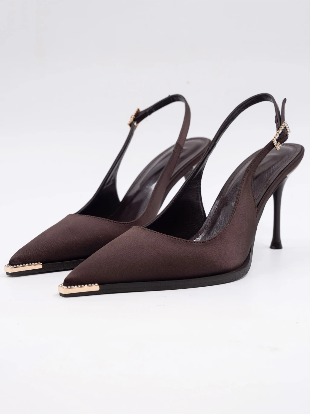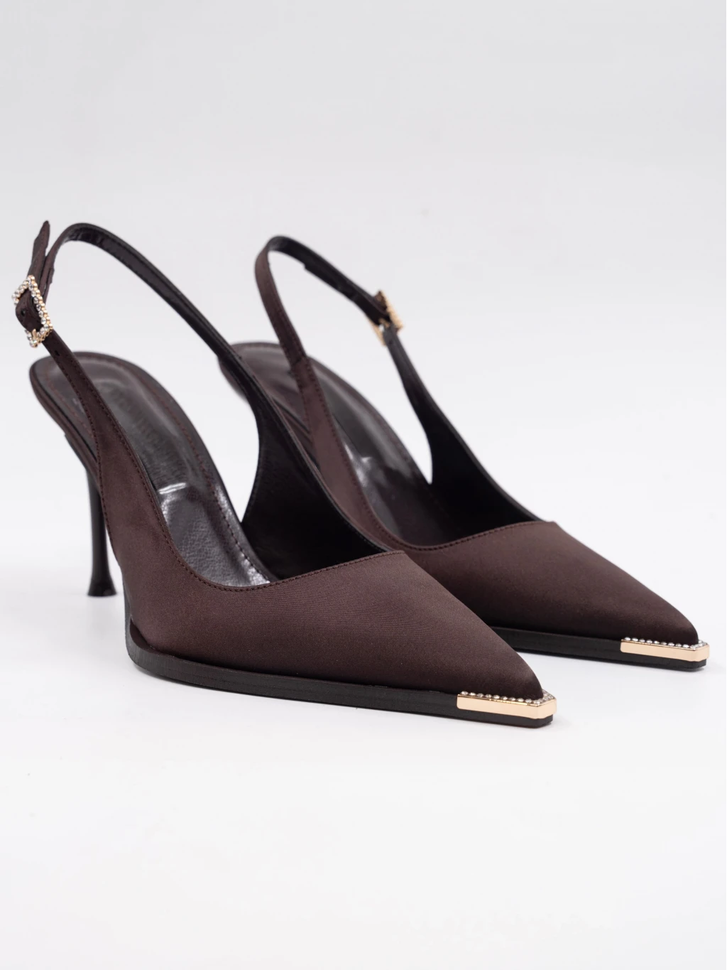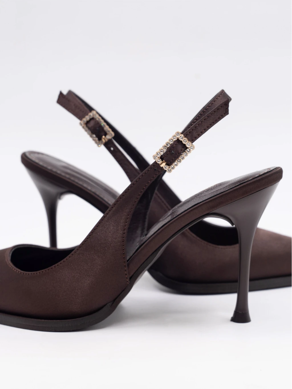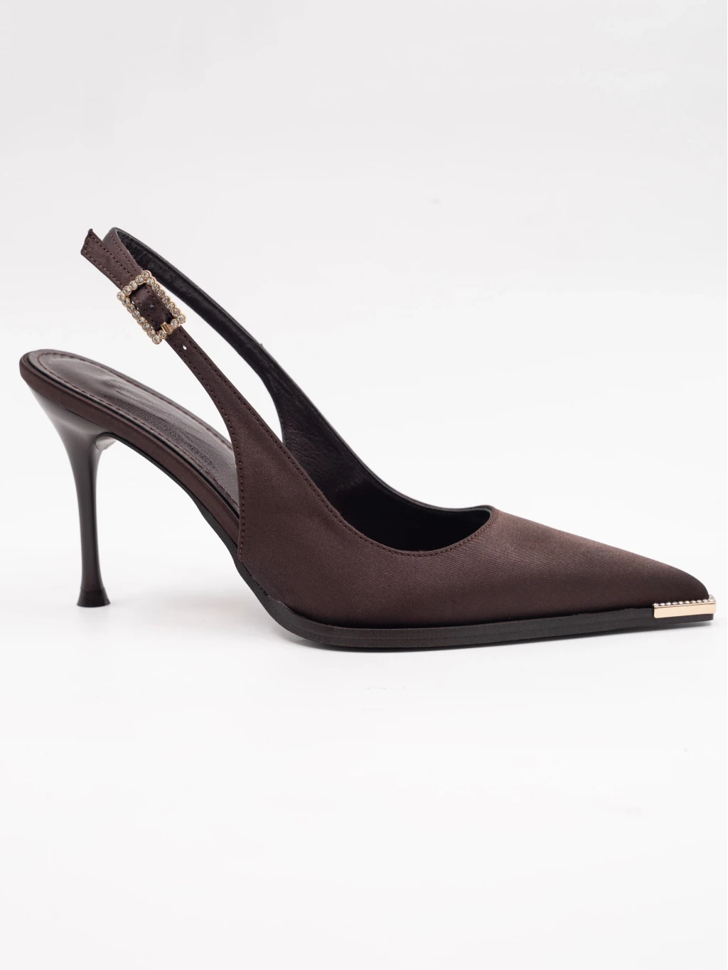 Saten Kumaş Topuklu Kahve