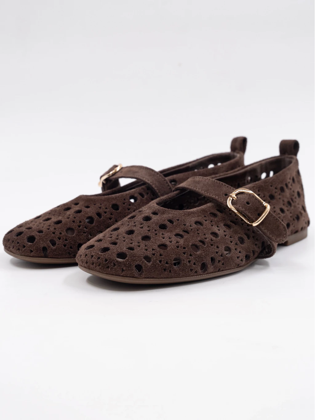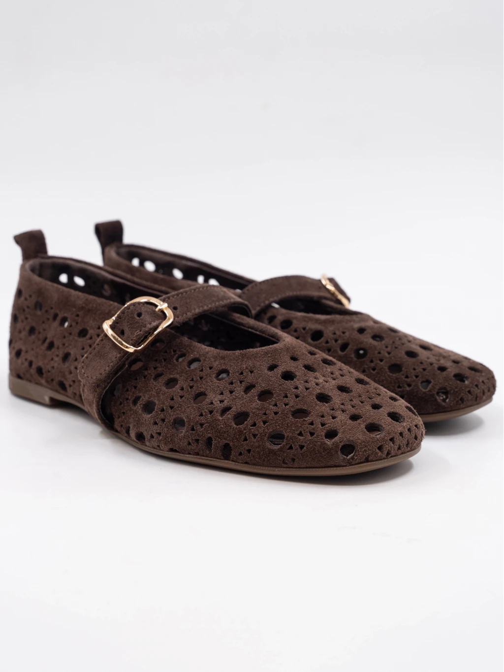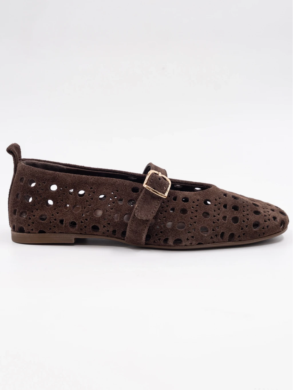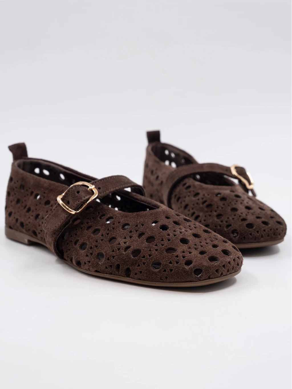 METAL TOK DETAY SÜET DERİ BABET KAHVE