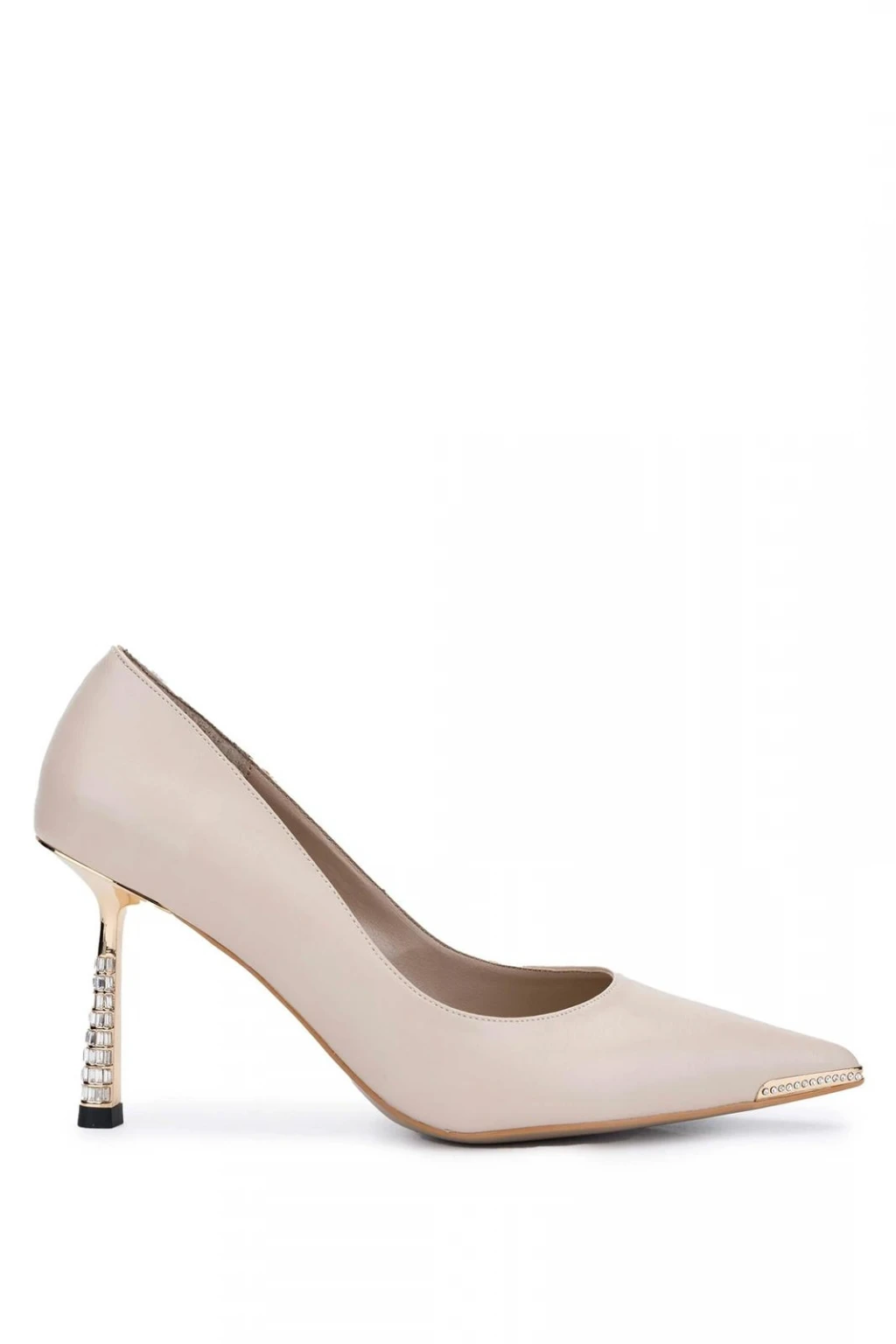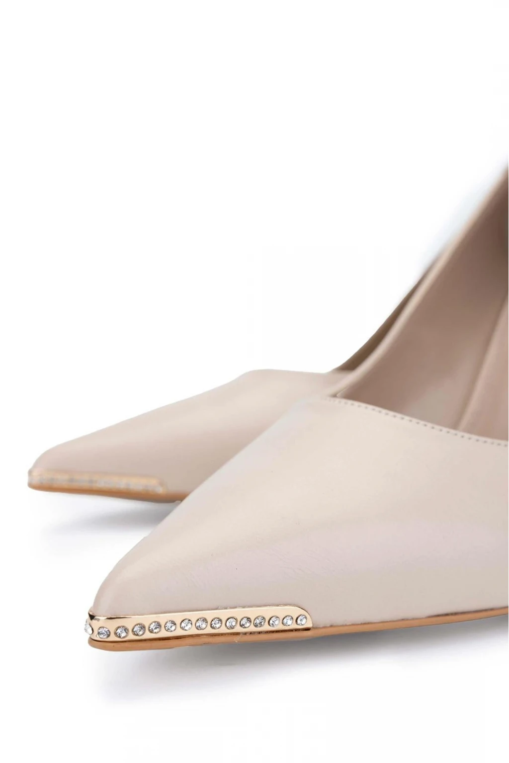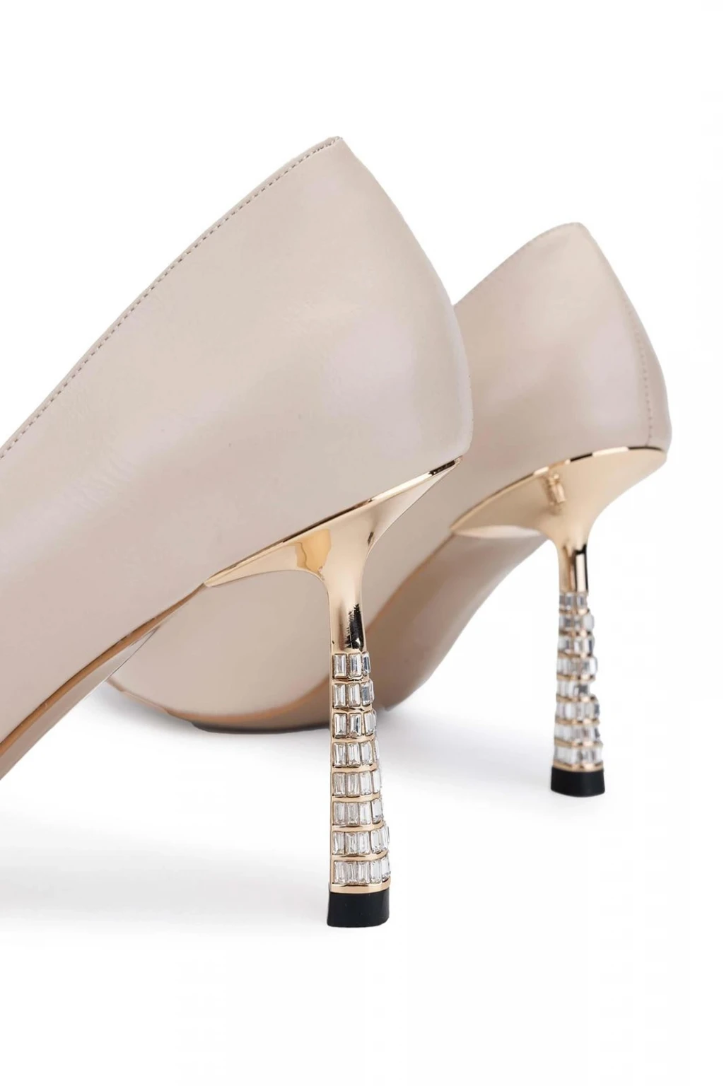 Taş Detay Rugan Stiletto Bej