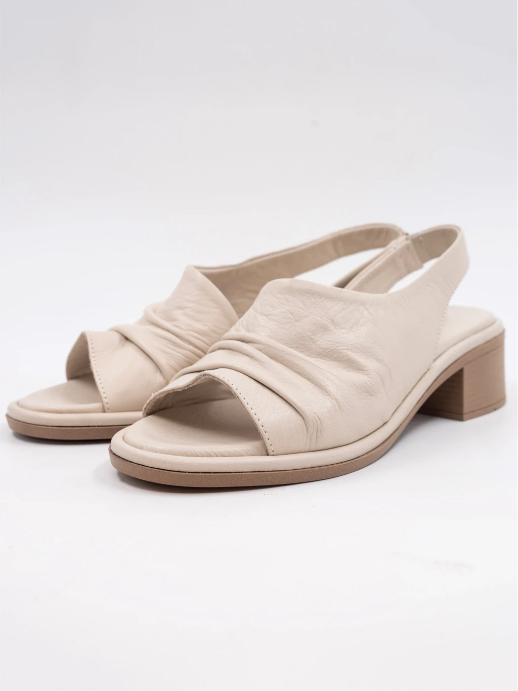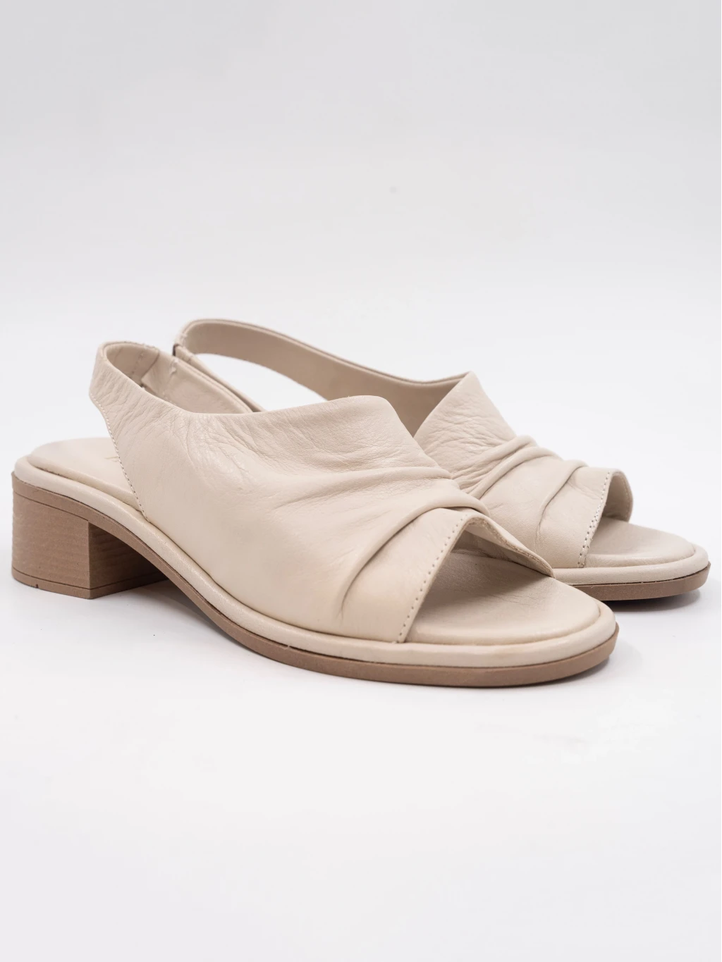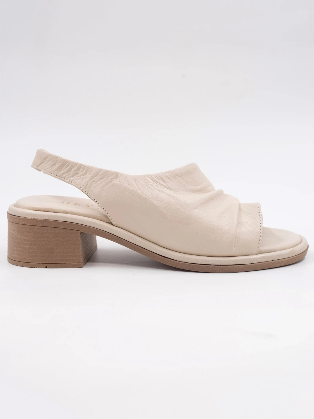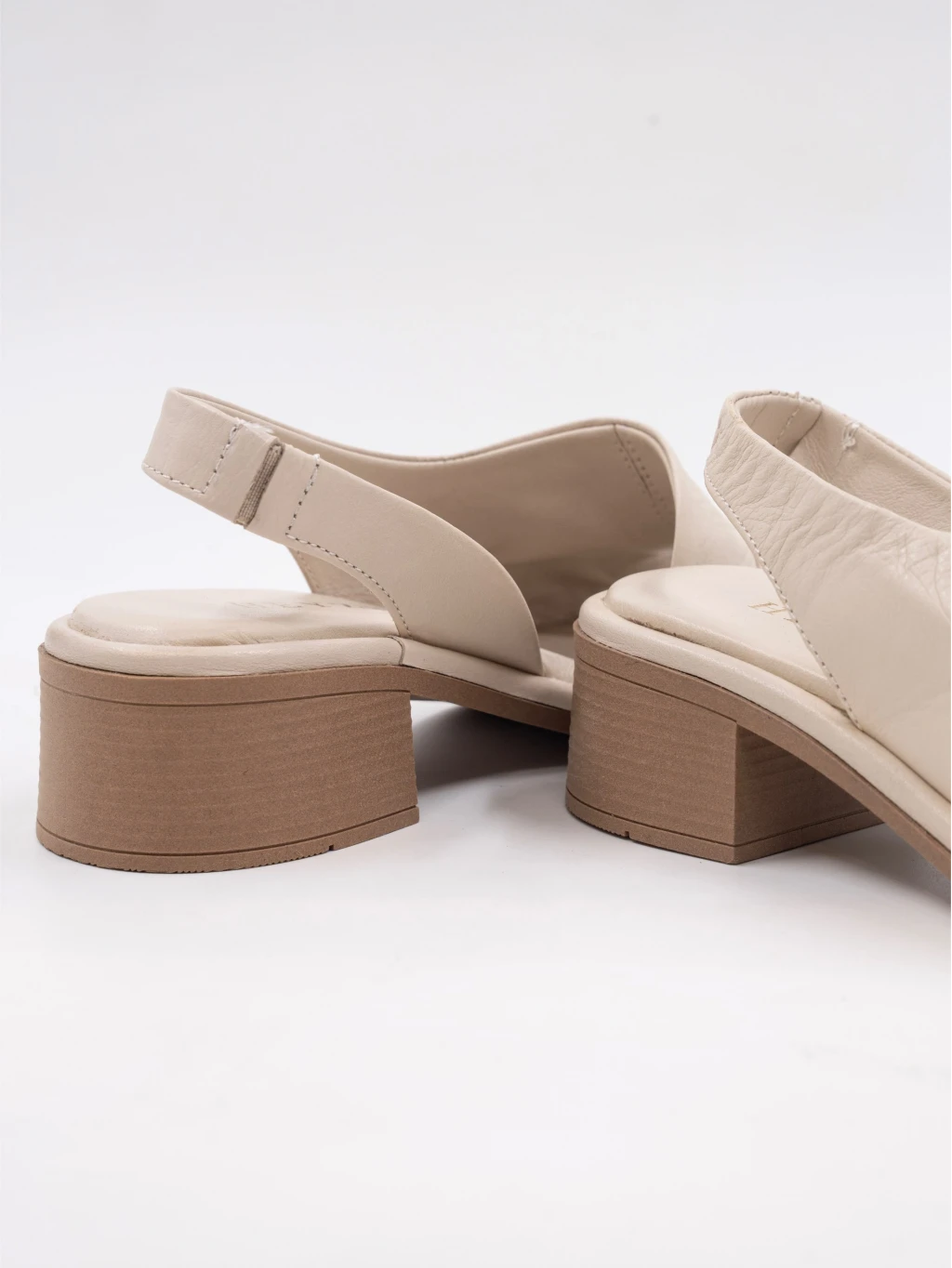 Topuklu Deri Sandalet Bej