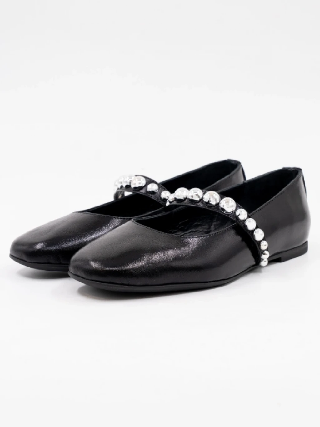 METAL DETAYLI DERİ BABET SİYAH