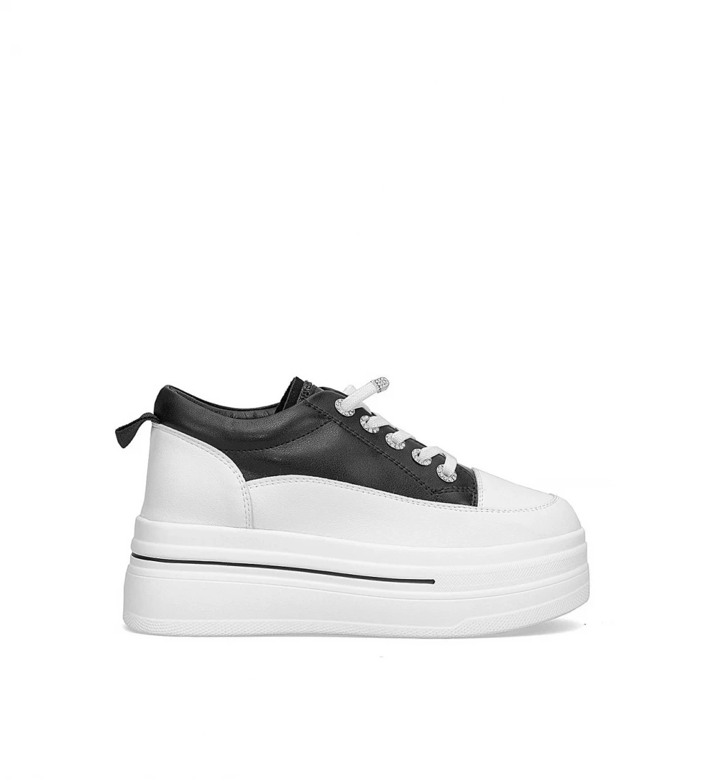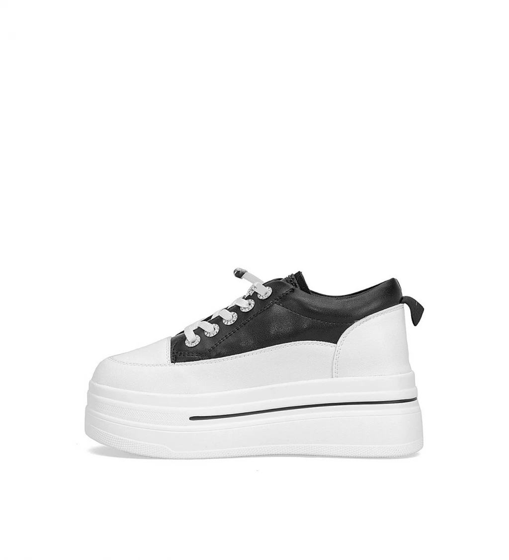 YÜKSEK TABAN DERİ TAŞLI AYAKKABI SİYAH
