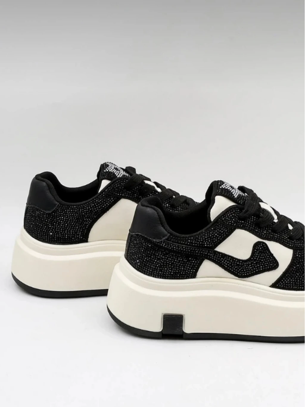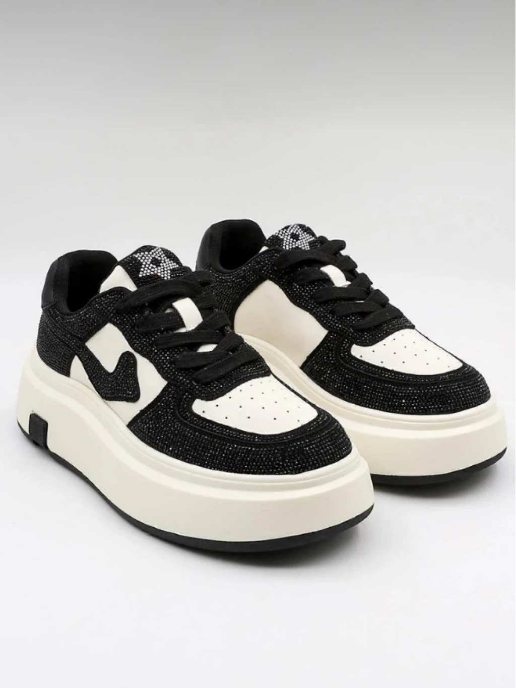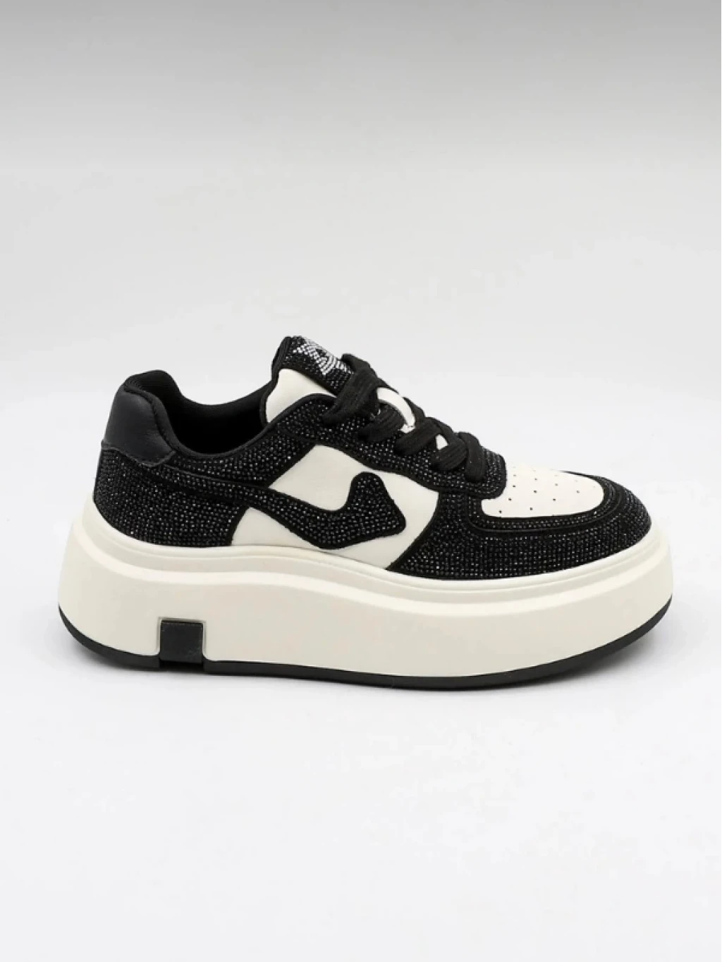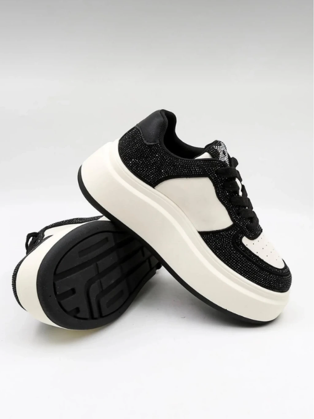 Yüksek Taban Deri Taşlı Ayakkabı Siyah